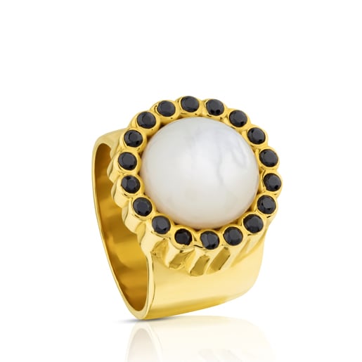 Anillo Sky Power con baño de oro 18 kt sobre plata con Nácar y Espinelas
