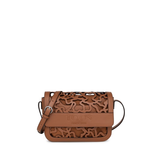 Bolsa bandolera TOUS Amaya Kaos Shock de piel sintética con troquelado Kaos en color marrón. Incorpora una solapa y el cierre es con botón magnético. El asa de bandolera es ajustable. Incluye una bolsa interior de poliéster con cierre de cremallera. Esta bolsa se puede poner o quitar gracias a los botones a presión que incorpora. Medidas (alto x ancho x fondo): 20 x 28 x 8 cm.