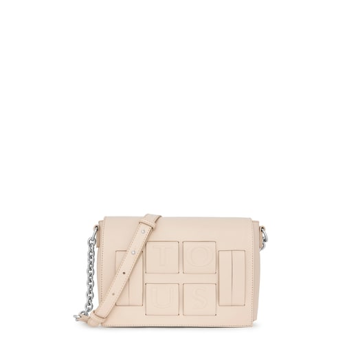 Súmate a la última tendencia: bolsos con efecto trenzado y logomanía. Esta bandolera pequeña en color beige a base de paneles entrelazados de piel sintética forma parte de la colección TOUS Damas. Líneas depuradas para el look urbano más deseado.