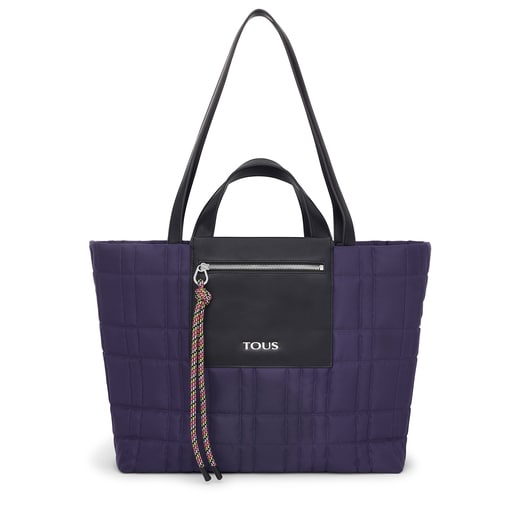 Bolsa capazo grande TOUS Empire Padded en color morado de nylon reciclado combinado con detalles de piel sintética. Cierre de cremallera. Un bolsillo frontal abierto y otro con cremallera. Bolsillo interior abierto. Asa fijas de mano y hombro. Medidas (alto x ancho x fondo): 30 x 47 x 5 cm.
