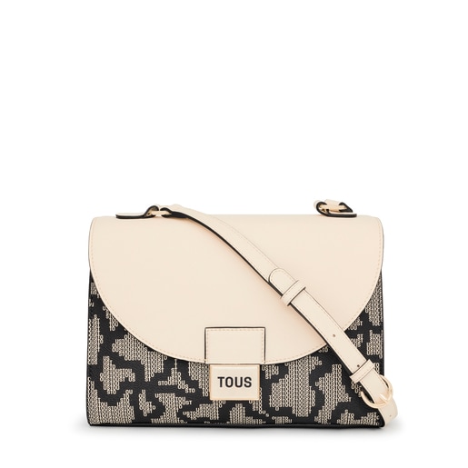 Bolso city mediano TOUS Kaos Pix de lona con estampado en color negro y beige. También incorpora detalles de piel sintética. Bolso con dos compartimentos separados por un bolsillo con cierre de cremallera. Cierre de solapa con dos botones magnéticos. Bolsillo trasero abierto. Asa bandolera ajustable. Medidas (alto x ancho x fondo): 19 x 27 x 13 cm.