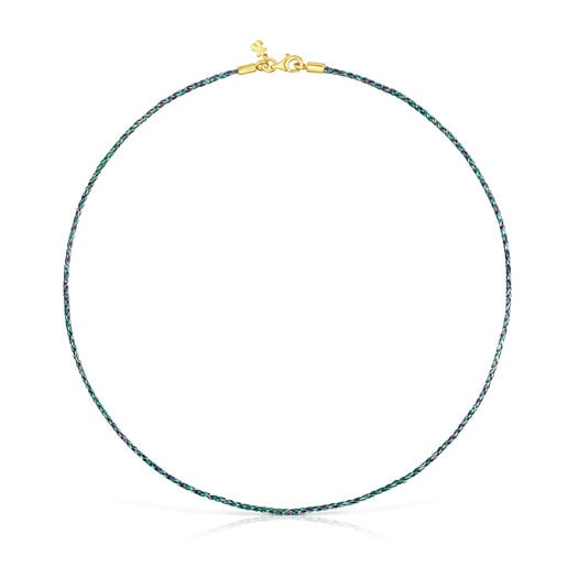 Collar TOUS de la colección Effecttous con hilo trenzado azul y verde. Longitud: 42 cm. Cierre mosquetón. Cierre mosquetón con baño de oro 18 kt sobre plata. Pieza fabricada con plata de primera ley con baño de oro de 18 a 23 kt y 3 micras de espesor. Esta calidad garantiza una mayor durabilidad de la joya.