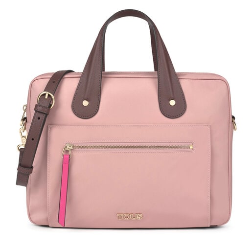 Maletin Tous de la colección Shelby de vinilo con efecto piel combinado con nylon reciclado en color rosa. Cierre con cremallera, asas de mano y asa bandolera extraíble y ajustable. Maletin cuenta con 1 bolsillo exterior con cremallera, 1 bolsillo exterior plano y 2 bolsillos interiores: 1 plano y 1 con cremallera. Medidas: 34 x 27 x 7cm.