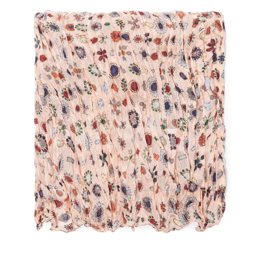 Pañuelo Tous de la colección Teatime plisado en rosa multicolor. Composicion: seda. Medidas: 200 x 75 cm.