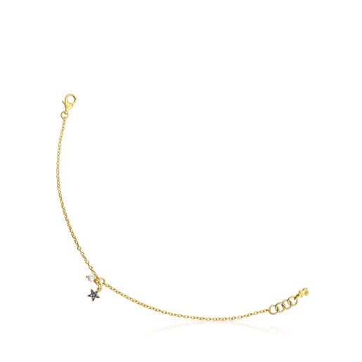 Pulsera TOUS New Motif con baño de oro 18 kt sobre plata con estrella de zafiros azules de 5,1mm x 5,32mm y perla de Ø3mm. Longitud de la pulsera: 17,5cm.