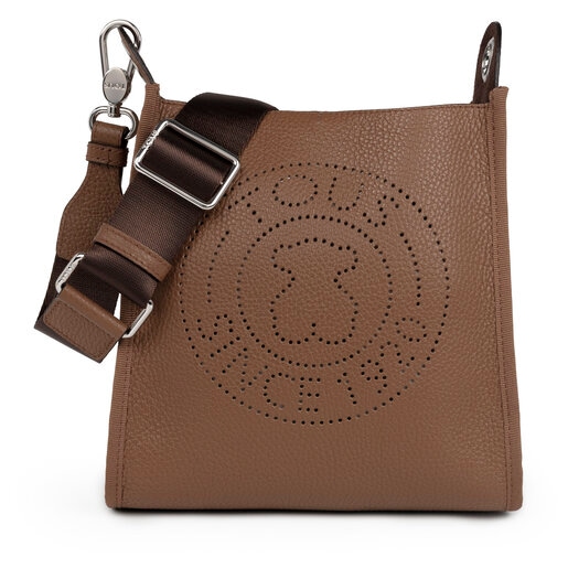 Bolsa saca pequeña TOUS colección Leissa de piel bovina con efecto troqueado en color marrón. Cierre con cordón de piel. Asa de bandolera ajustable y extraíble. Bolsillo interior plano. Medidas: 21 x 22 x 6 cm.