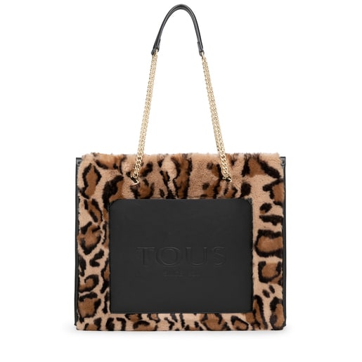Bolso shopping grande TOUS Amaya Wild de pelo sintético con estampado animal print en color beige y negro. Las asas largas para el hombro incorporan una cadena que aporta sofisticación a esta pieza. El cierre es con botón magnético. Incluye un bolsillo exterior abierto. También viene con un bolsillo interior abierto y otro con cierre por cremallera. Este fantástico bolso de suave tacto se convertirá en un complemento ideal para este invierno. Medidas (alto x ancho x fondo): 34 x 40 x 17 x cm.