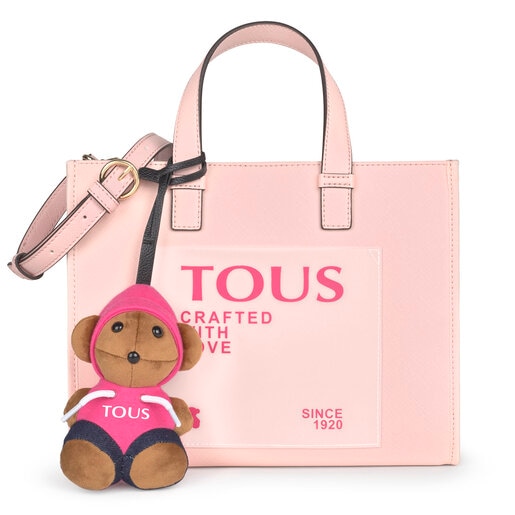Bolso shopping mediano TOUS de la colección Amaya Dulzena de vinilo efecto piel en color rosa. Cierre con botón magnético. Asas de mano y asa de bandolera ajustable y extraíble. Bolsillo exterior plano y dos bolsillos interiores con cremallera. El bolso cuenta con una borla oso de peluche en color rosa. Medidas: 15x21,5x27,5 cm.