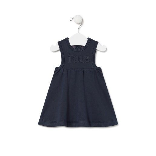 Vestido de bebé Tous Baby de cuello redondo, sin mangas de corte cintura alta evasé. Confeccionado en suave algodón liso con logo TOUS bajo escote. Cierre con botón en la espalda. Composición: 100%Algodón. Color: Azul marino. Certificado OEKO/TEX*. Fabricado en la UE.