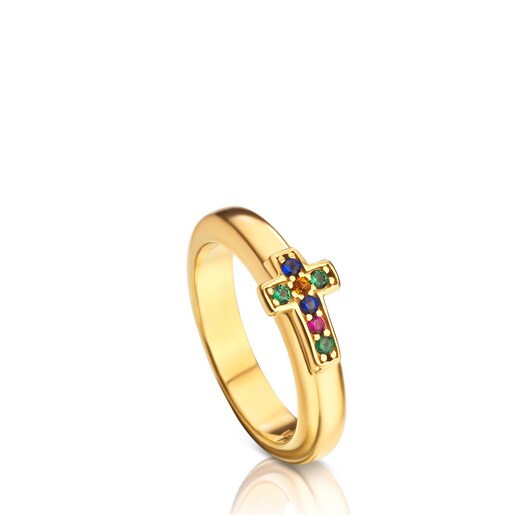 Кольцо TOUS Gen из вермеля с разноцветными сапфирами. Общий вес в каратах: 0,22 карат. Вермель: серебро высшей пробы, покрытое золотом 18 карат.