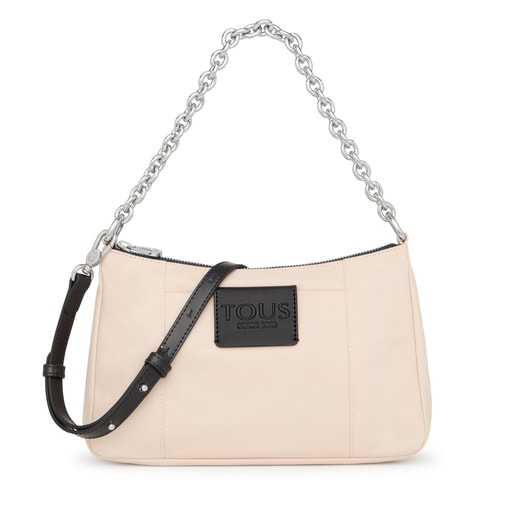 Comfort and urban style. This crossbody bag in beige recycled nylon with synthetic leather details and chain belongs to the TOUS Empire Soft Chain collection. The latest trend for the freshest looks.