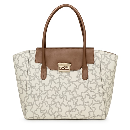 The iconic Kaos print and TOUS logo stand out on this tote bag in beige and black canvas with brown calfskin details, which belongs to the TOUS Kaos Legacy collection. Elegant, functional accessories for a timeless look.