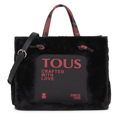 Средняя сумка-shopping TOUS из коллекции Amaya Fur из винила под кожу с черной меховой подкладкой. Застежка-кнопка на магните. Ручки и регулируемый съемный ремень-кроссбоди. Плоский внешний карман и 2 внутренних кармана на молнии. Размеры: 15,5 x 20,5 x 27 см.