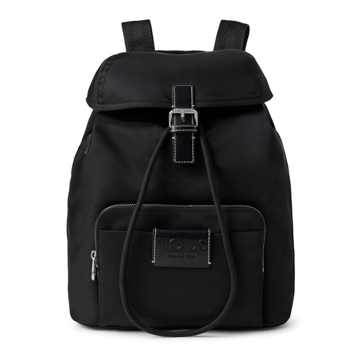Рюкзак TOUS из коллекции Empire Soft Chain из черного переработанного нейлона. Клапан. Затягивается на шнур из ткани. Регулируемые плечевые ремни и короткий ремешок-ручка. Рюкзак с 2 карманами на молнии: один внутри и один снаружи. Размеры: 17 x 28 x 34 см.