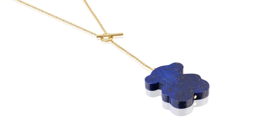 عِقد TOUS 1950 قصير من الذهب المرصع باللازورد على شكل دبدوب