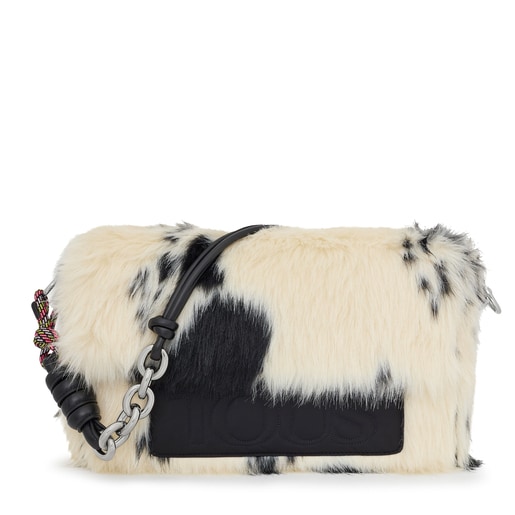 حقيبة بحزام يلتف حول الجسم من تشكيلة TOUS Empire Fur كبيرة من الفرو الصناعي مع طباعة على شكل حيوان باللونين الأسود والأبيض. يغلق بقفل قلاب بزر مغناطيسي. جيب أمامي واحد مفتوح وجيب آخر بسحّاب. جيب داخلي مفتوح. حزام كتف ثابت مع عُقد وحلقات. المقاسات (الارتفاع × العرض × العمق): 21 × 36 × 13 سم.