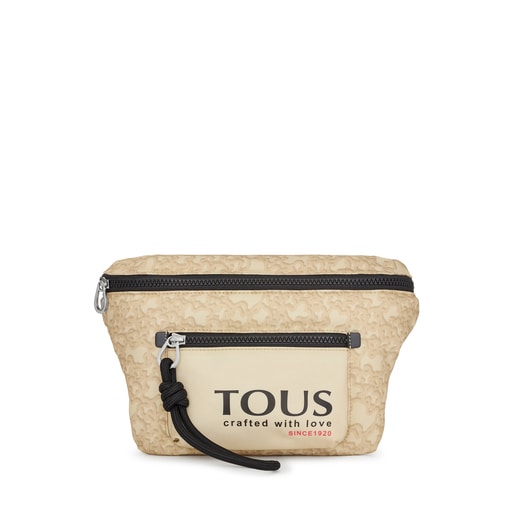 حقيبة خصر من TOUS من التشكيلة Kaos Mini Evolution باللون البيج من النايلون المعاد تدويره المُزيّن بزخارف من الجلد الاصطناعي. حقيبة خصر تغلق بسحّاب. جيب خارجي بسحّاب إغلاق وجيب داخلي مفتوح. حزام قابل للتعديل. المقاسات (الارتفاع × العرض × العمق): 18 x 30 x 6 سم.