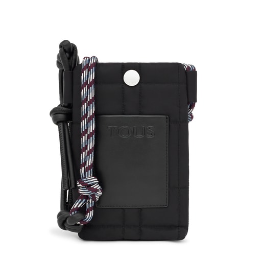 حقيبة يد صغيرة Empire Padded مبطنة من TOUS باللون الأسود من النايلون المُعاد تدويره والمُزيّن بزخارف من الجلد الاصطناعي. زر إغلاق مغناطيسي. جيب أمامي مفتوح. حاجز داخلي وجيب داخلي مفتوح. حزام يلتف حول الجسم، مع عُقد للضبط. القياسات (الارتفاع × العرض × العمق): 19 × 12 × 4 سم.