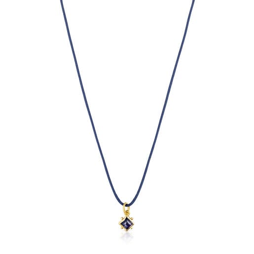 عقد من تشكيلة TOUS Magic Nature بقلادة من الفضة المطلية بالذهب عيار 18، ومُرصّع بحجر إيوليت مقاس 6.5 مم برباط أزرق. طول القلادة: قابلة للضبط حتى 70 سم. أسلوب الإنتاج: الصب. القطعة مصنوعة من الفضة الاسترلينية ومطلية بالذهب عيار يبدأ من 18 إلى 23 قيراطًا ويبلغ سُمكها 3 ميكرون. هذه الجودة تضمن متانةً أكبر لقطعة المجوهرات.