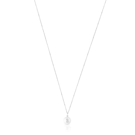 عقد TOUS Puppies من الذهب الأبيض عيار 18 قيراطًا واللؤلؤ المستزرع والألماس. الوزن الإجمالي: 0.01 قيراط. الطول: 45 سم.