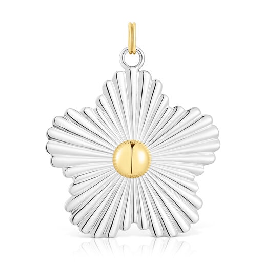 قلادة كبيرة من الفضة الاسترلينية وفيرميل الفضة مع حِلية على شكل زهرة من تشكيلة TOUS Iris Motif. مقاس القلادة: 35.5 مم. مقاس التميمة من فيرميل الفضة: 10 مم. هذه القطعة لا تشمل السلسلة.