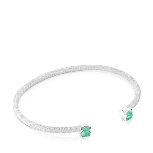 أسورة Mesh Color رفيعة من TOUS من الفضة الإسترلينية بقطعتَي دبدوب من الأمازونايت وإطار من الفضة. حجم الدبدوب: 0.6 سم. عرض الأسورة: 3 مم.
