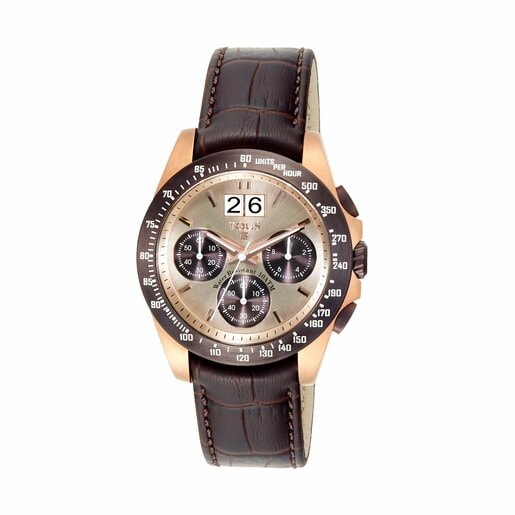 ساعة IP Drive Crono قرنفلية/بلون الشوكولاتة ذات نغمتيْن من الصُلب بحزام بني من الجلد