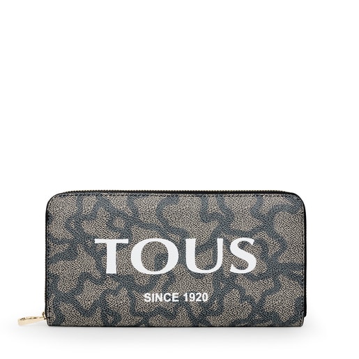 Medium TOUS Kaos Legacy wallet in waterproof canvas with a black and beige Kaos print. It includes other details in beige calfskin leather. It fastens with a zipper. The interior has an open, transparent slot for your card or ID. The interior has 2 open compartments, 1 with a zipper and 12 card slots. Measurements (height x width x depth): 10 x 19 x 2 cm.