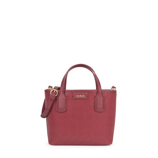 Small Tous tote bag from the Script Day collection in canvas combined with burgundy synthetic leather details. Magnetic button closure. Long adjustable and removable shoulder strap, carry handles. Inside zip pocket. Measurements: 11 x 32 x 20 cm.