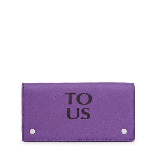 TOUS Balloon flat wallet in lilac-colored cowhide leather. Flap closure and two snap buttons. It has two open compartments inside for banknotes, one zipped pocket for coins and six card slots. Measurements (height x width x depth): 10 x 19.5 x 2 cm.