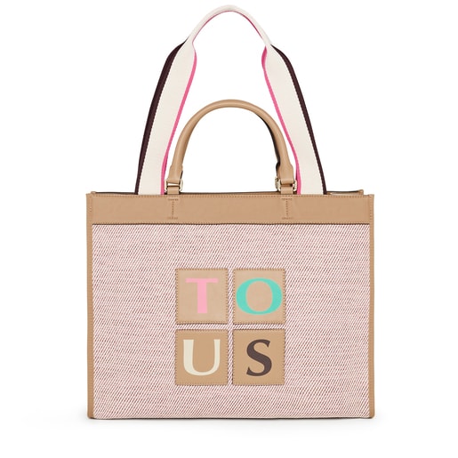 Large TOUS Yummy pink shopping bag in cotton combined with synthetic leather trim. Fastens with a magnetic button. Features two handles and two shoulder straps. It has an inside pocket with zipper. Measurements (height x width x depth): 30 x 38 x 16 cm.