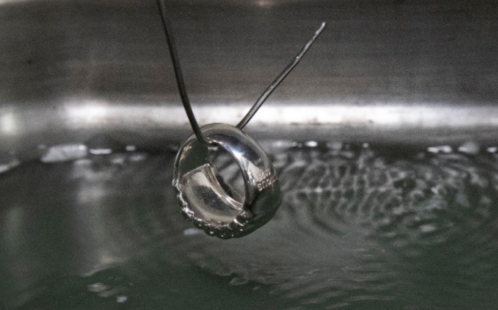 To remove any remnants of the pastes we have applied to the jewelry, we use an ultrasonic device, which creates vibration in water at the correct temperature, and special soaps.