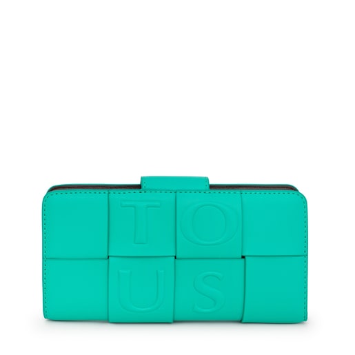 Get on board with the latest trend: accessories with braided effect and logomania. This wallet in fluorescent turquoise with its interlacing panels in synthetic leather belongs to the TOUS Damas collection. Refined lines for a more desired urban look.