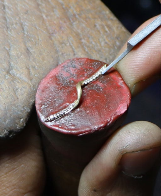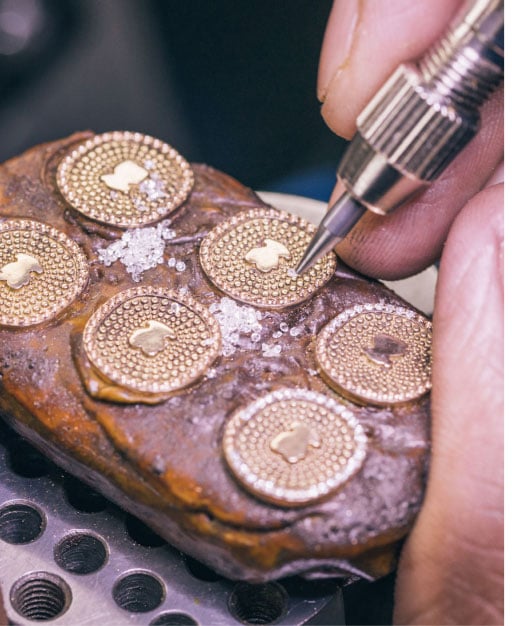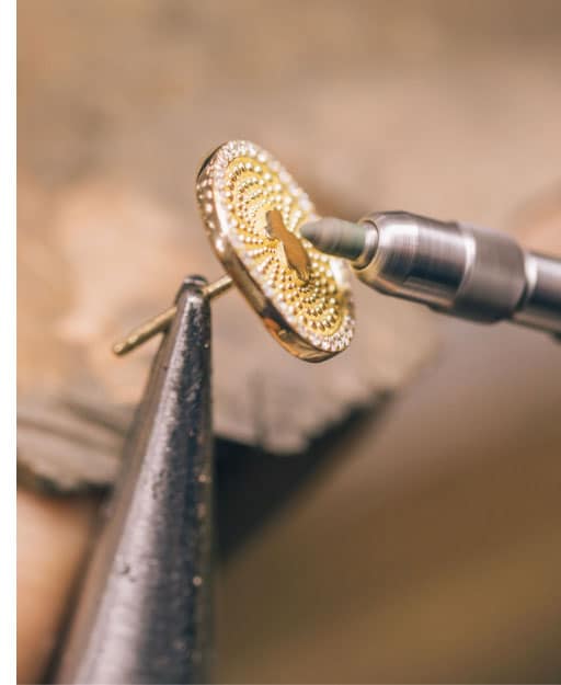 Expert jewelers transform a design into a unique piece of jewelry using a fabrication process that reflects the tradition of the craft while incorporating innovative production techniques.