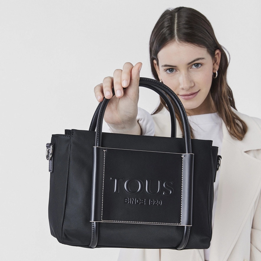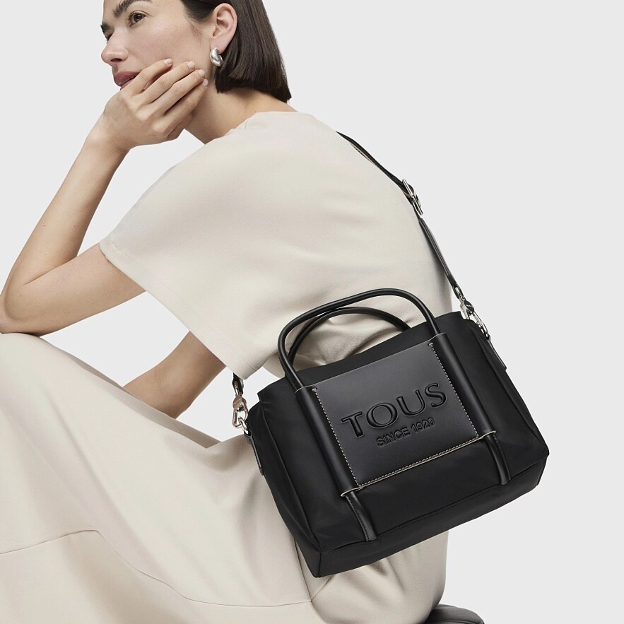 Сумка TOUS Empire Soft из переработанного нейлона черного цвета. Размеры: 10,5 x 31,5 x 20 см.