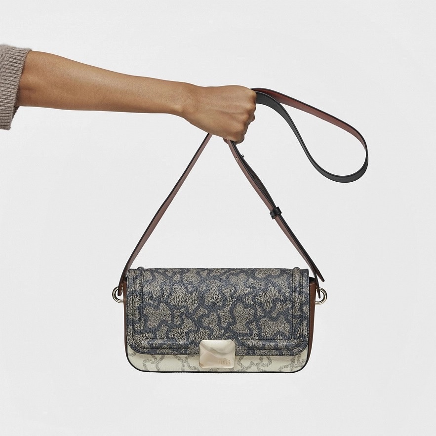 Сумка TOUS Kaos Icon через плечо с бежево-черным принтом Kaos из искусственной кожи. Клапан с магнитной кнопкой для застежки. Открытый внутренний карман. Регулируемый ремень через плечо. Размеры (высота х ширина х глубина): 13,5 х 26,5 х 7 см.