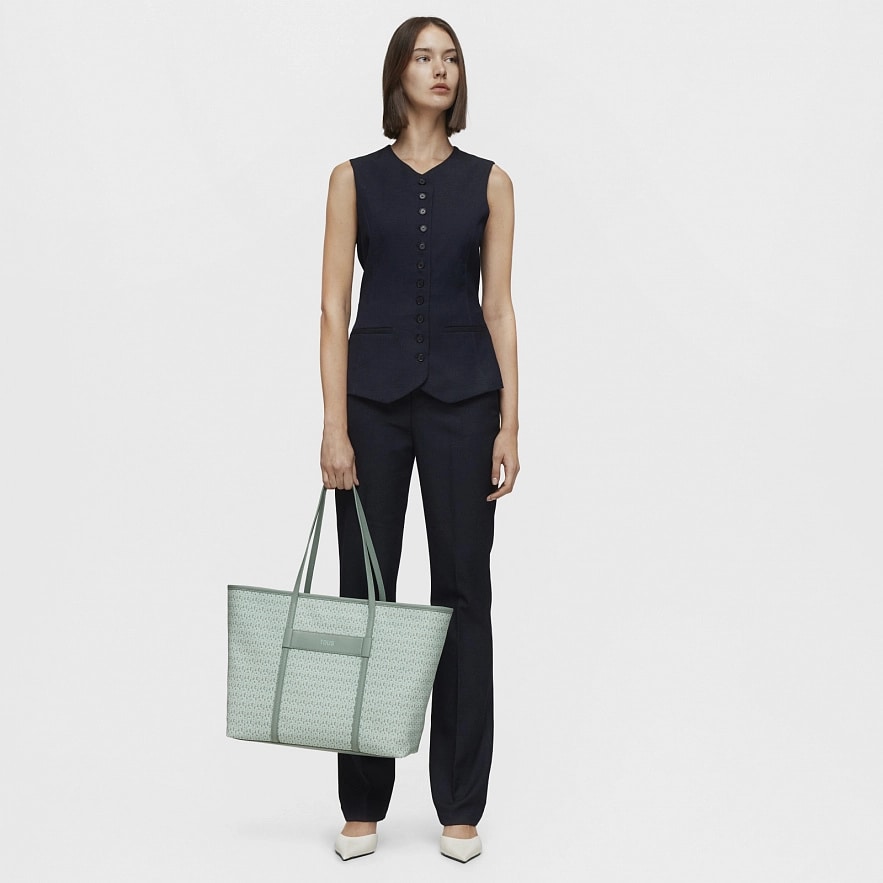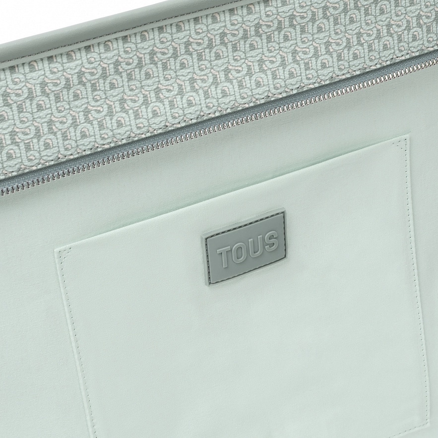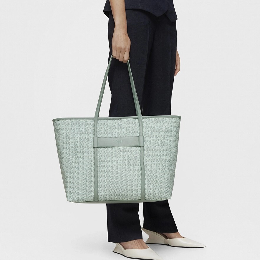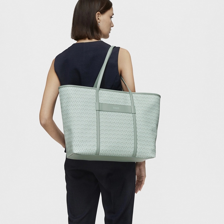 Большая сумка TOUS Manifesto с мятно-зеленой отделкой из искусственной кожи. Застежка на молнии. Внутренний карман на молнии. Фиксированные плечевые ремни. Размеры (высота х ширина х глубина): 30 х 50 х 15 см.