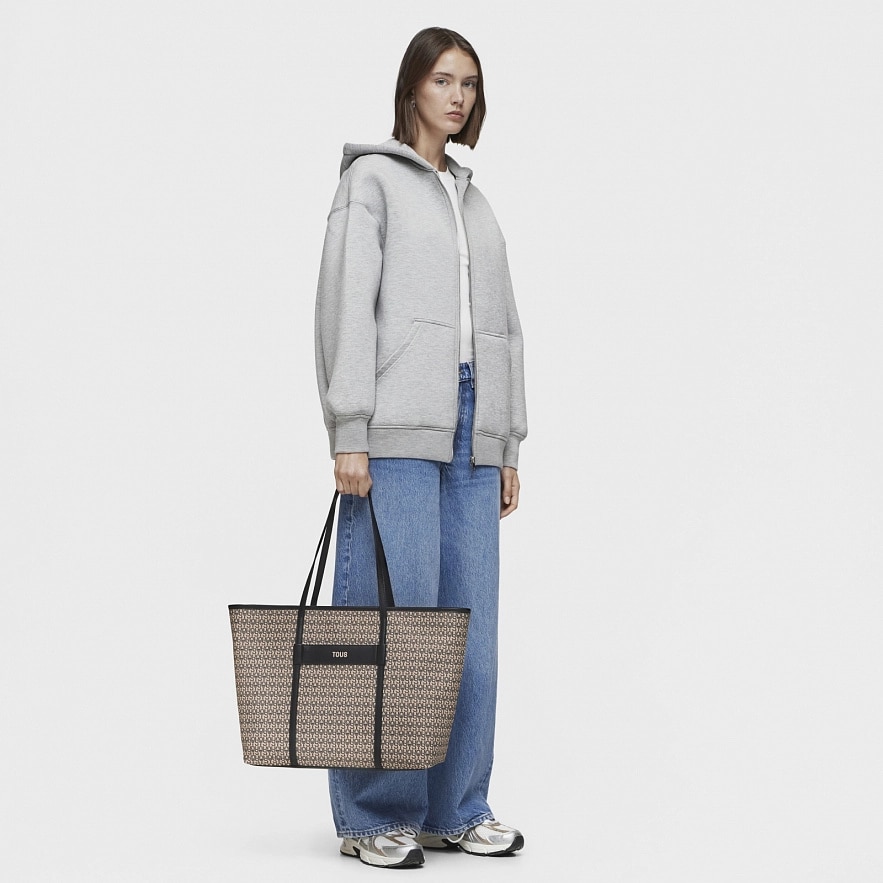 Большая сумка TOUS Manifesto с темно-серой отделкой из искусственной кожи. Застежка на молнии. Внутренний карман на молнии. Фиксированные плечевые ремни. Размеры (высота х ширина х глубина): 30 х 50 х 15 см.