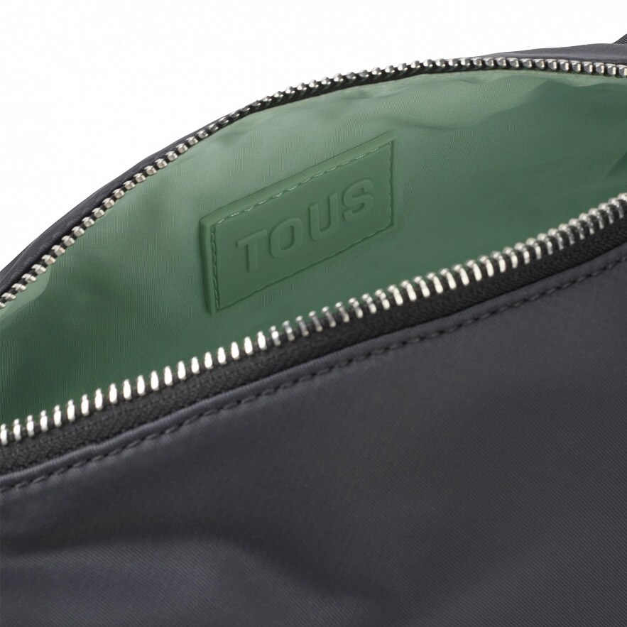 Сумка TOUS Miranda Soft из полиэстра с темно-серой полиуретановой отделкой. Застегивается на молнию. Фиксированные плечевые ремни и регулируемый и съемный наплечный ремень. Размеры (высота х ширина х глубина): 13,5 x 24 x 6,2 см.