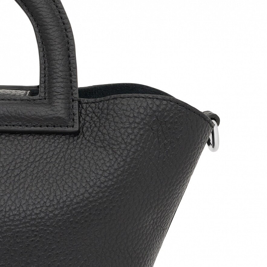 Сумка через плечо TOUS Dora из черной воловьей кожи с сертификатом LWG . Застежка на магнитной кнопке. Фиксированная ручка и регулируемый и съемный наплечный ремень. Размеры (высота х ширина х глубина): 17,5 x 24 x 15 см.