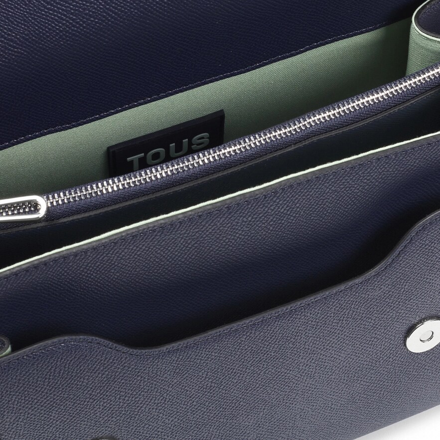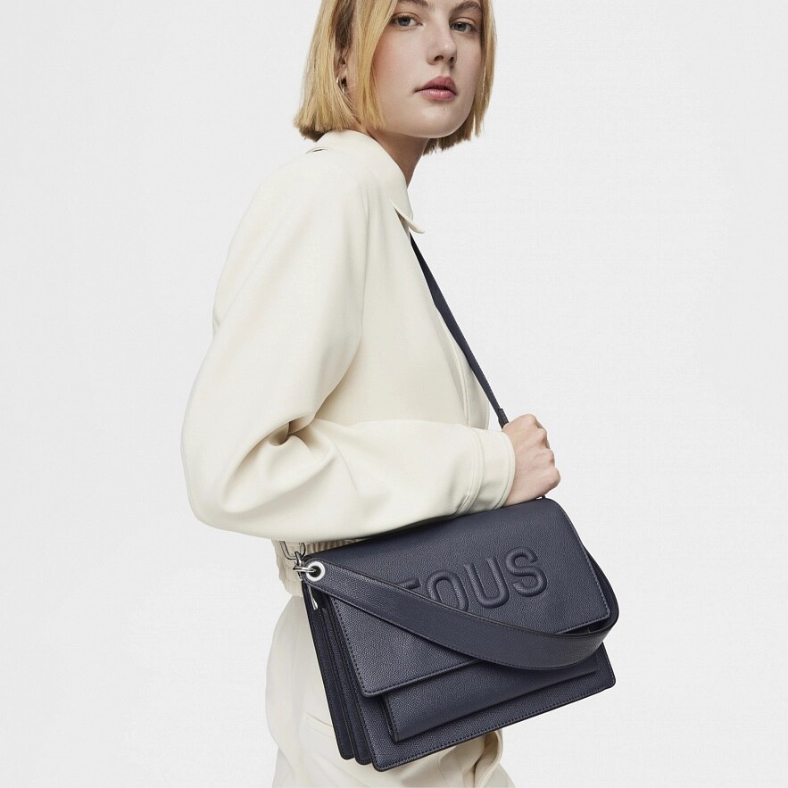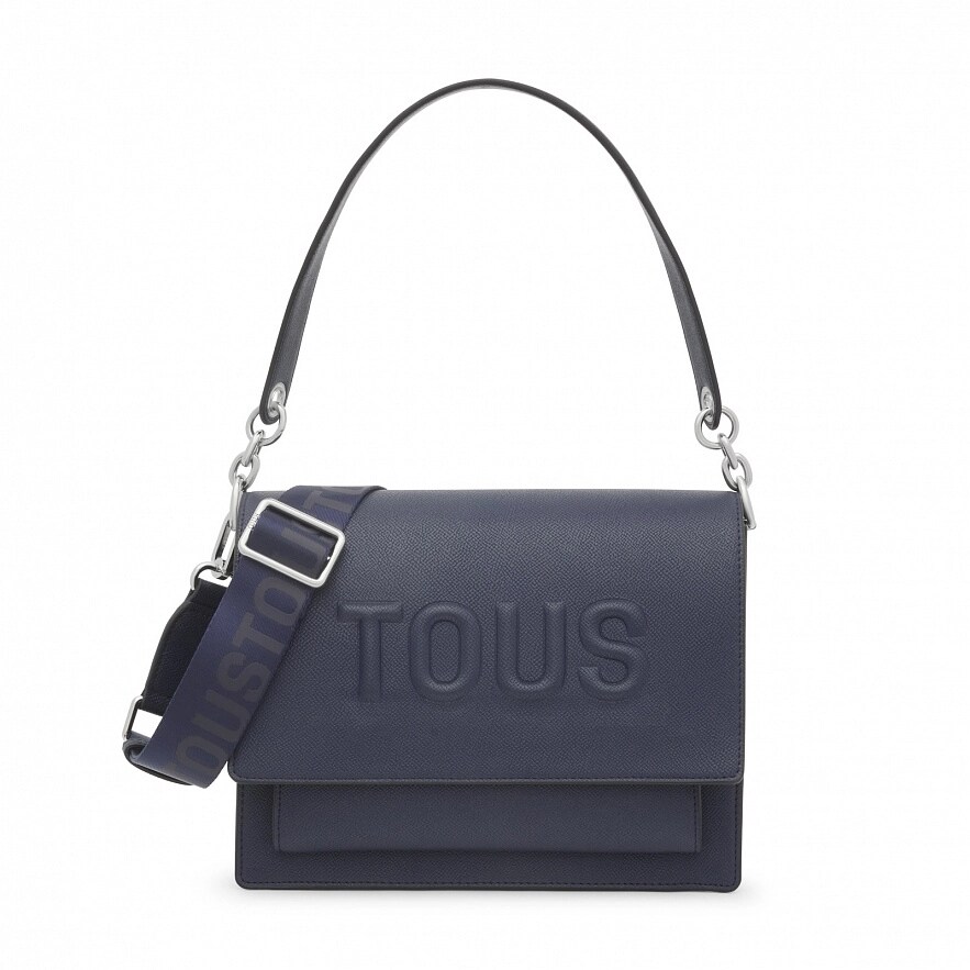 Сумка TOUS Brenda из полиуретана синего цвета. Имеет клапан и застежку на две магнитные кнопки. Имеет два отделения, разделенные одним на молнии, и открытый карман спереди. Фиксированный плечевой ремень и съемный регулируемый наплечный ремень. Размеры (высота х ширина х глубина): 19 х 25 х 11,5 см.