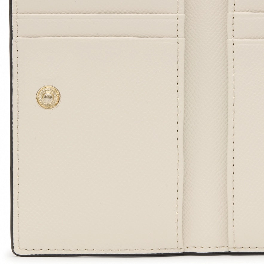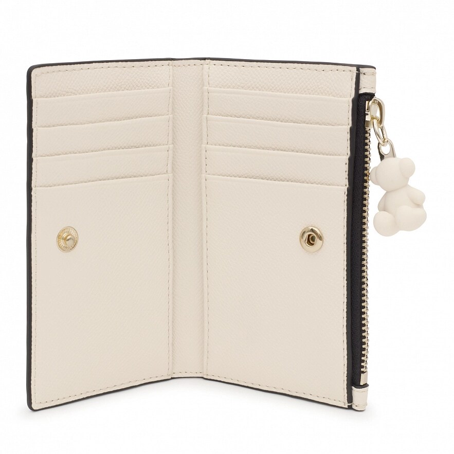 Кошелек TOUS Brenda из бежевого полиуретана. Закрывается на кнопку. Имеет отделение для монет на молнии. Внутри восемь отделений для карточек и два отделения для купюр. Размеры (высота х ширина х глубина): 8,5 х 14 х 2 см.