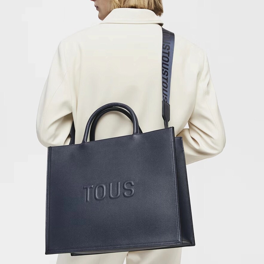 Большая полиуретановая сумка-шопер TOUS Brenda Amaya темно-синего цвета. Застежка на молнию. Внутренний карман на молнии. Фиксированные плечевые ремни и регулируемый ремень через плечо. Размеры (высота x ширина x глубина): 31 x 38 x 16 см.