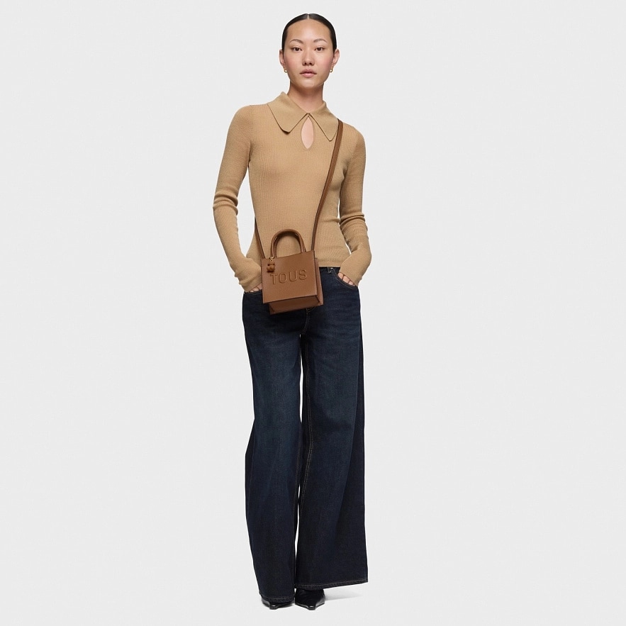 Сумка TOUS Brenda из полиуретана цвета кемел. Застежка на магнитной кнопке. Фиксированные ручки, регулируемый и съемный наплечный ремень. Имеет симпатичную подвеску в виде мишки. Размеры (высота х ширина х глубина): 14 х 16 х 8,5 см.