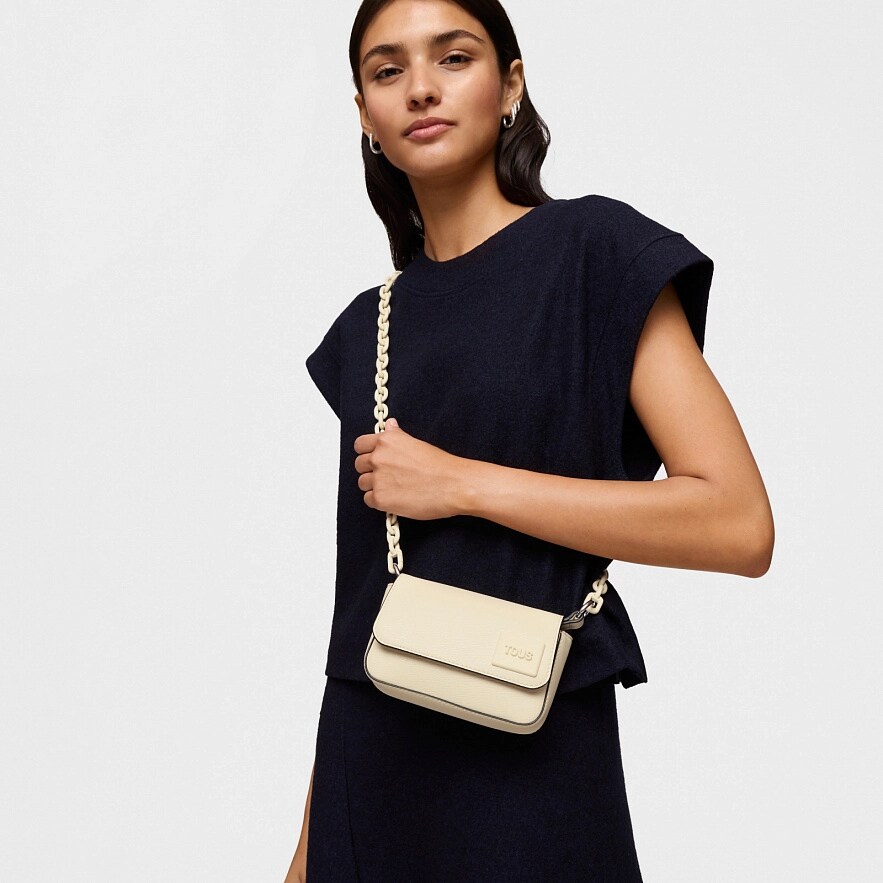 Сумка TOUS Amanda из искусственной кожи бежевого цвета. Откидной клапан на магнитной кнопке. Фиксированный плечевой ремень и съемный наплечный ремень. Размеры (высота х ширина х глубина): 10 х 16,5 х 5 см.