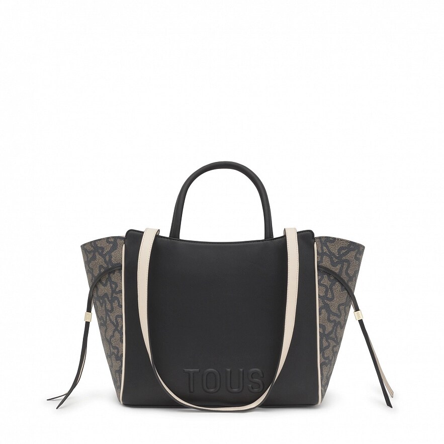 Сумка TOUS Kaos Icon из искусственной кожи и канвы черного цвета. Застежка на молнии. Внутренний карман на молнии. Фиксированный плечевой ремень и ручка. Размеры (высота х ширина х глубина): 27 x 47 x 16 см.