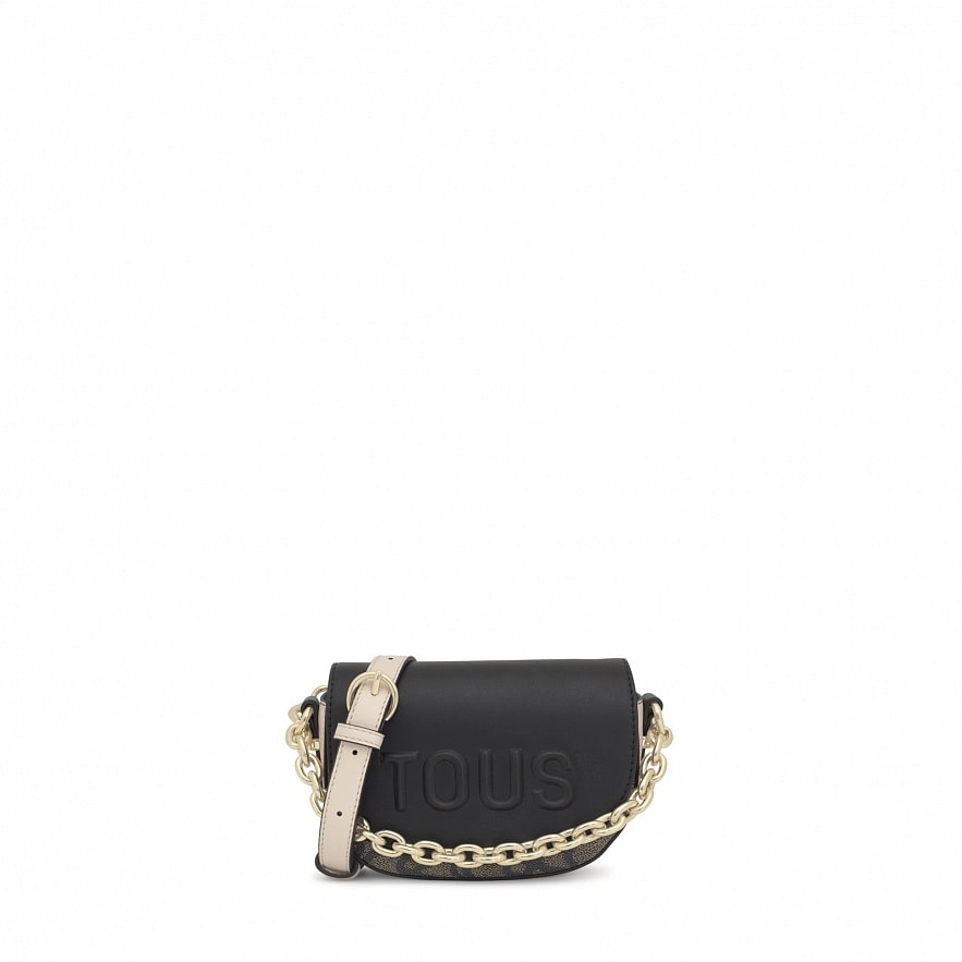 СумкаTOUS Kaos Icon из черного и бежевого полиуретана в форме полумесяца. Застежка на магнитной кнопке. Регулируемый ремень через плечо. Размеры (высота х ширина х глубина): 13 х 22 х 7 см.
