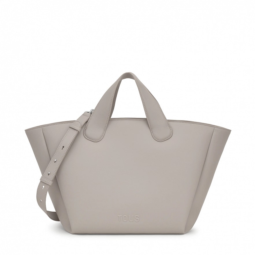 Сумка TOUS Bloom из полиуретана, большая, серого цвета. Застежка на молнии. Фиксированные ручки и фиксированный плечевой ремень. Открытый внутренний карман открытый. Размеры (высота х ширина х глубина): 27 x 51 x 19 см.