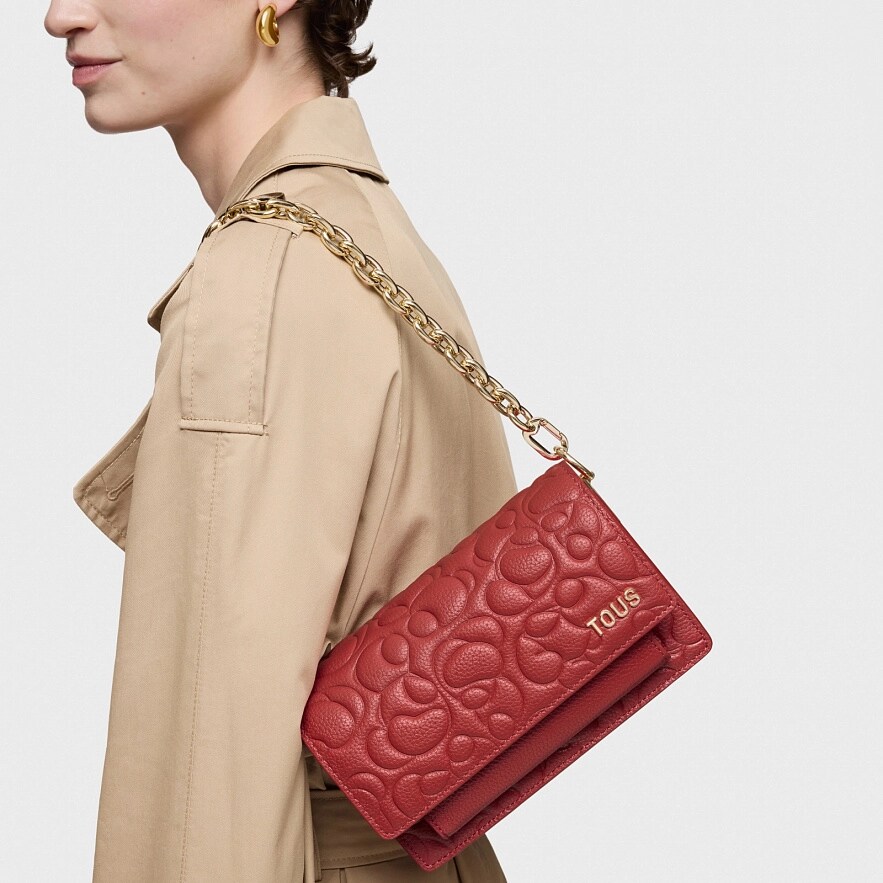 Сумка TOUS Greta Audree из коровьей кожи с сертификатом LWG красного цвета. Застежка на две магнитные кнопки. Открытый карман спереди и два открытых отделения внутри, разделенных молнией. Съемный плечевой ремень, регулируемый и съемный наплечный ремень. Размеры (высота х ширина х глубина): 12,5 х 20 х 11 см.