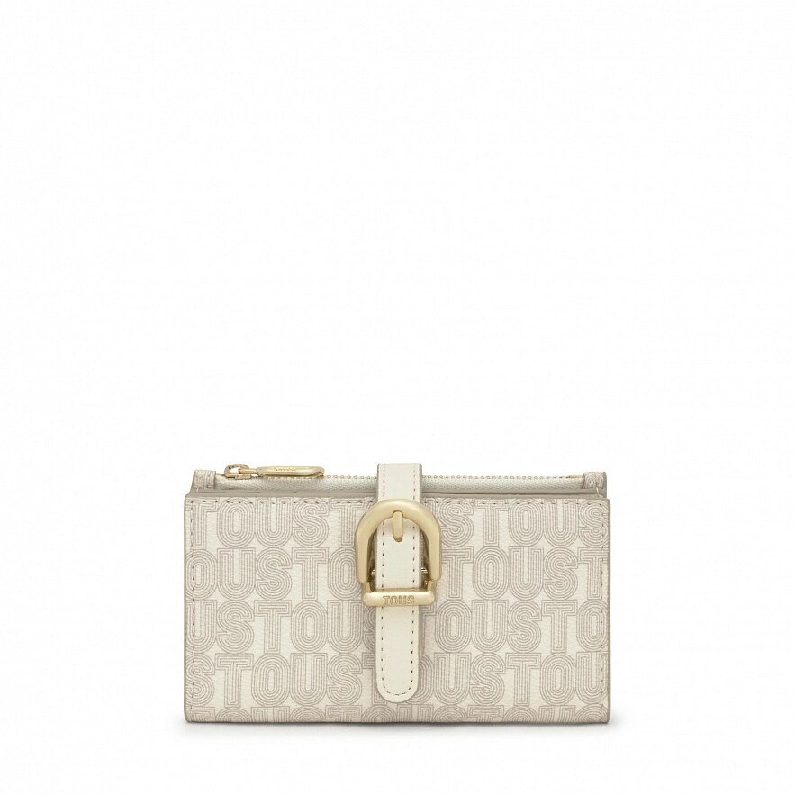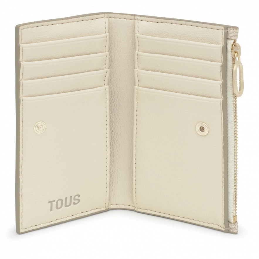 Кошелек TOUS Buckles Silhouette бежевого цвета с полиуретановой отделкой. Застегивается на кнопку. Внутри отделения для купюр, восемь слотов для карточек и отделение для монет на молнии. Роз